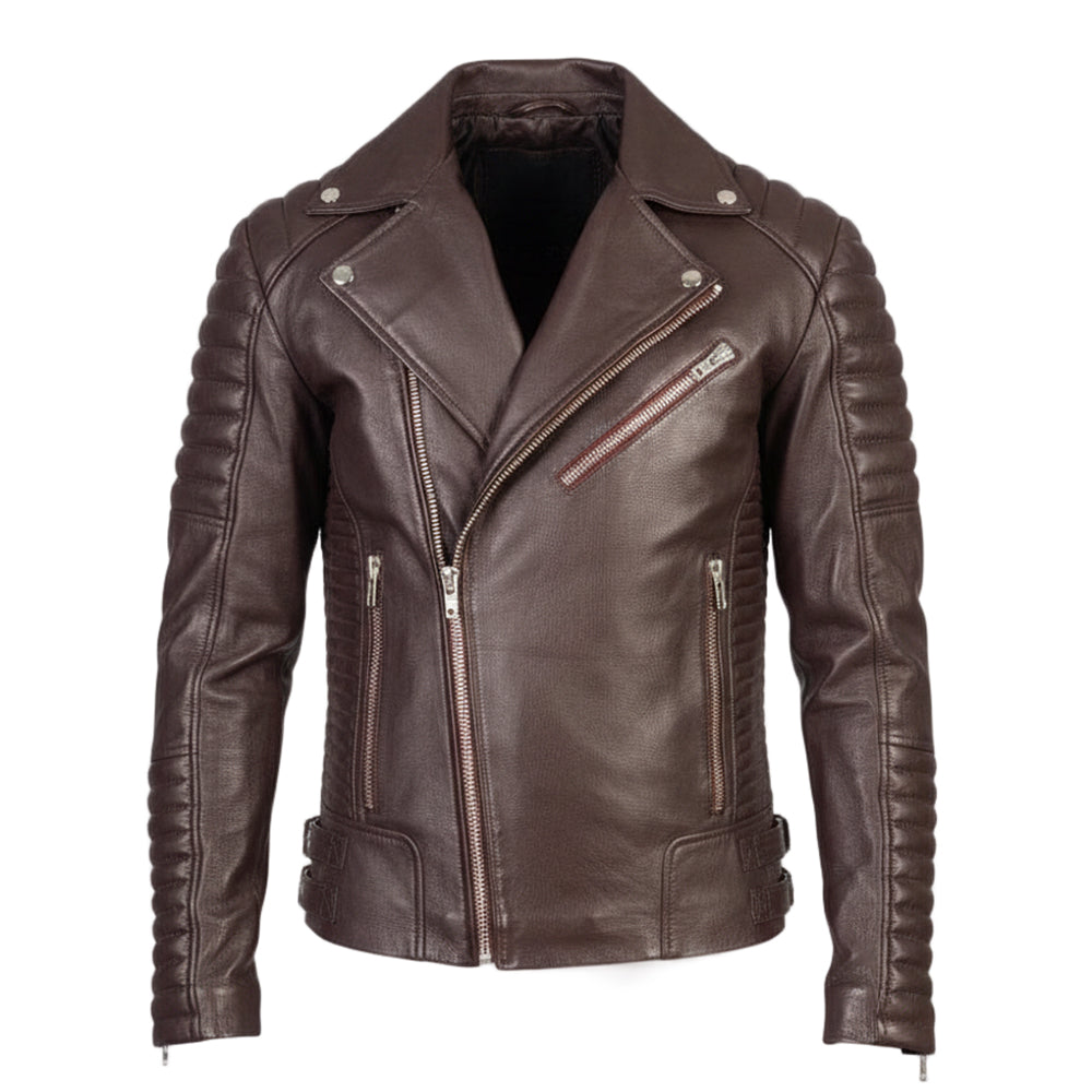 سترة راكبي الدراجات النارية من الجلد باللون الكستنائي من أرماند