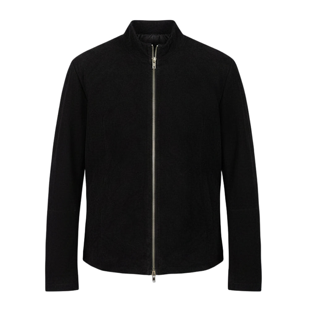 تفاصيل عصرية وسحاب غير متماثل يميزان سترة الدراجات النارية السوداء هذه من جلد السويد. لإطلالة مسائية أنيقة، تتميز هذه السترة الأنيقة من جلد السويد بسحاب غير متماثل ولمسات أنيقة.