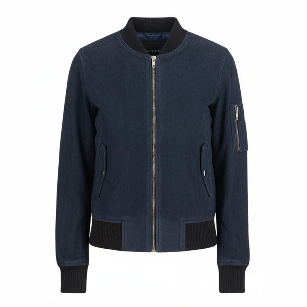 لمسة جريئة على قطعة كلاسيكية خالدة: سترة القاذفة الزرقاء