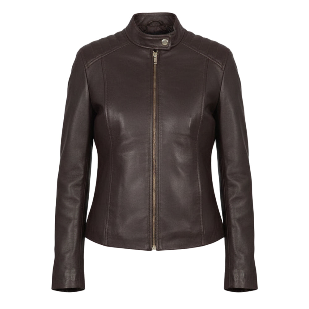 سترة راكبي الدراجات النارية الجلدية باللون الكستنائي من Kelsee