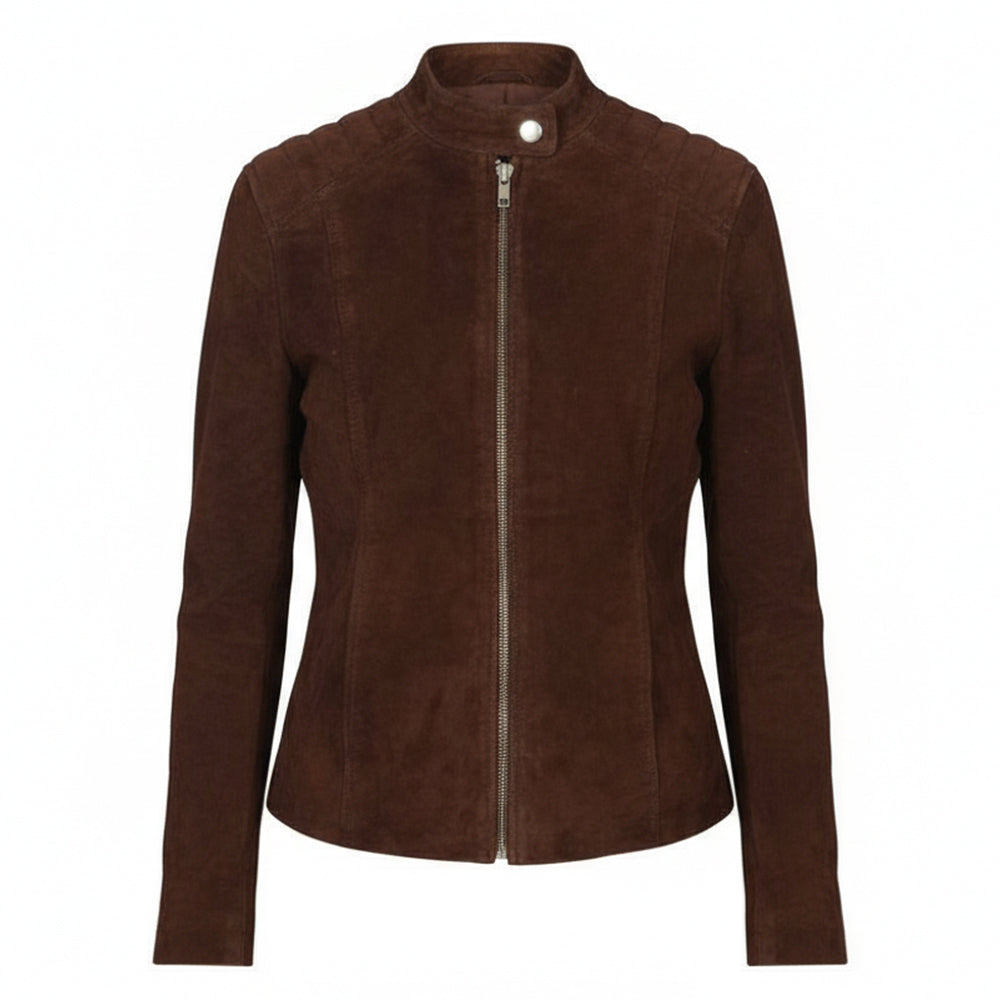 جاكيت راكبي الدراجات النارية من جلد الغزال موكا من Kelsee