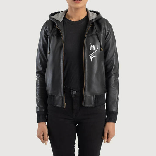 Brown Hooded Leather Bomber Jacket