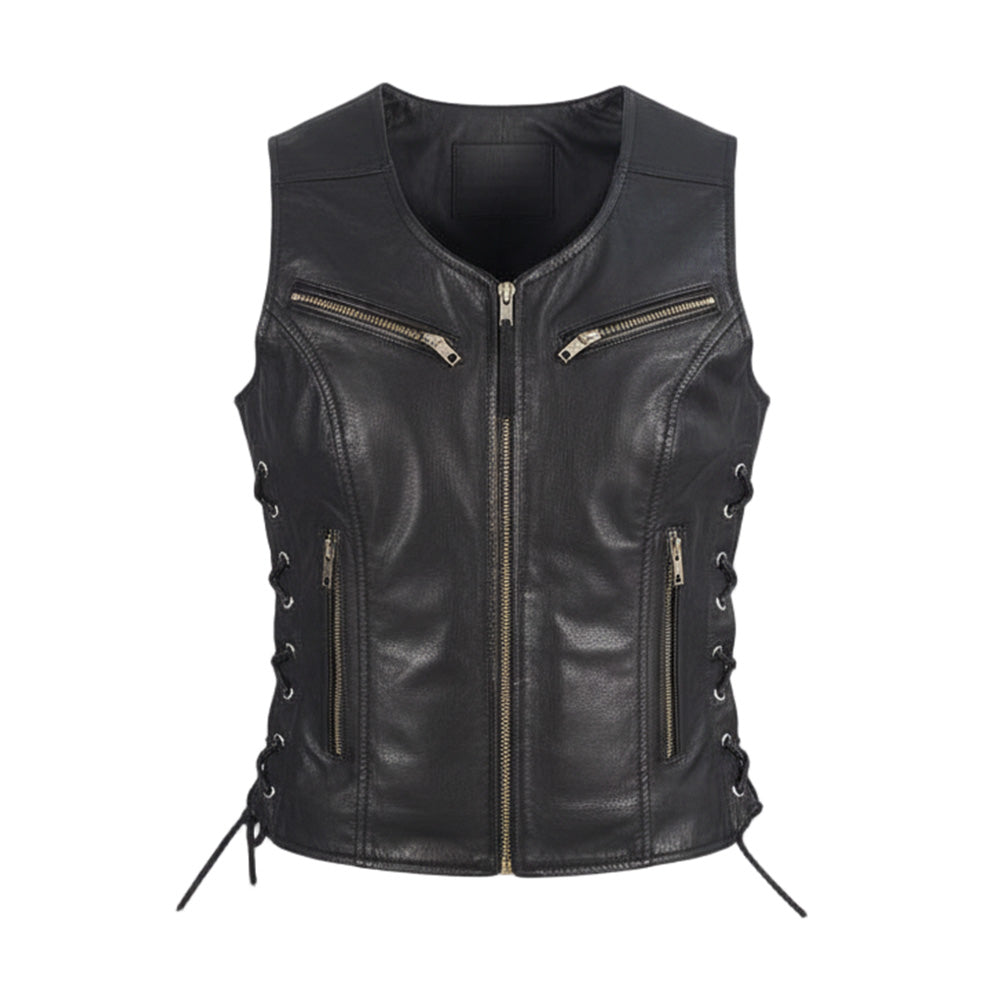Kožená motocyklová vesta pro ženy je stylový a užitečný kousek, který ztělesňuje ducha nezávislosti, dobrodružství a jedinečnosti. Ideální pro oživení vašeho outfitu. Kožená motocyklová vesta je nezbytným kouskem oblečení jak pro motorkáře, tak pro ty, kteří dbají na módu, protože kombinuje drsný styl se sofistikovaným designem. Vesty jsou navrženy tak, aby vydržely a byly flexibilní, a proto vám poskytnou to nejlepší z obou světů: stylu a funkčnosti.