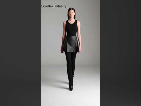Hameen hillittyä väriä korostavat tummanharmaat sukkahousut, kun taas luonnonnahkaisen laskostetun minihameen ja reilun kokoisen, dolman-hihaisen yläosan yhdistäminen aiheuttaa vaatetusongelmia – nuorekas tyyli tinkimättä hienostuneisuudesta. Imartelevan laskostetun vyötärön ja ainutlaatuisen tekstuurin ansiosta tämä tyyli tuntuu sekä hauskalta että ylelliseltä – täydellinen kaikkiin viikonlopun aktiviteetteihin tai yhdistettynä upeisiin korkokengiin.