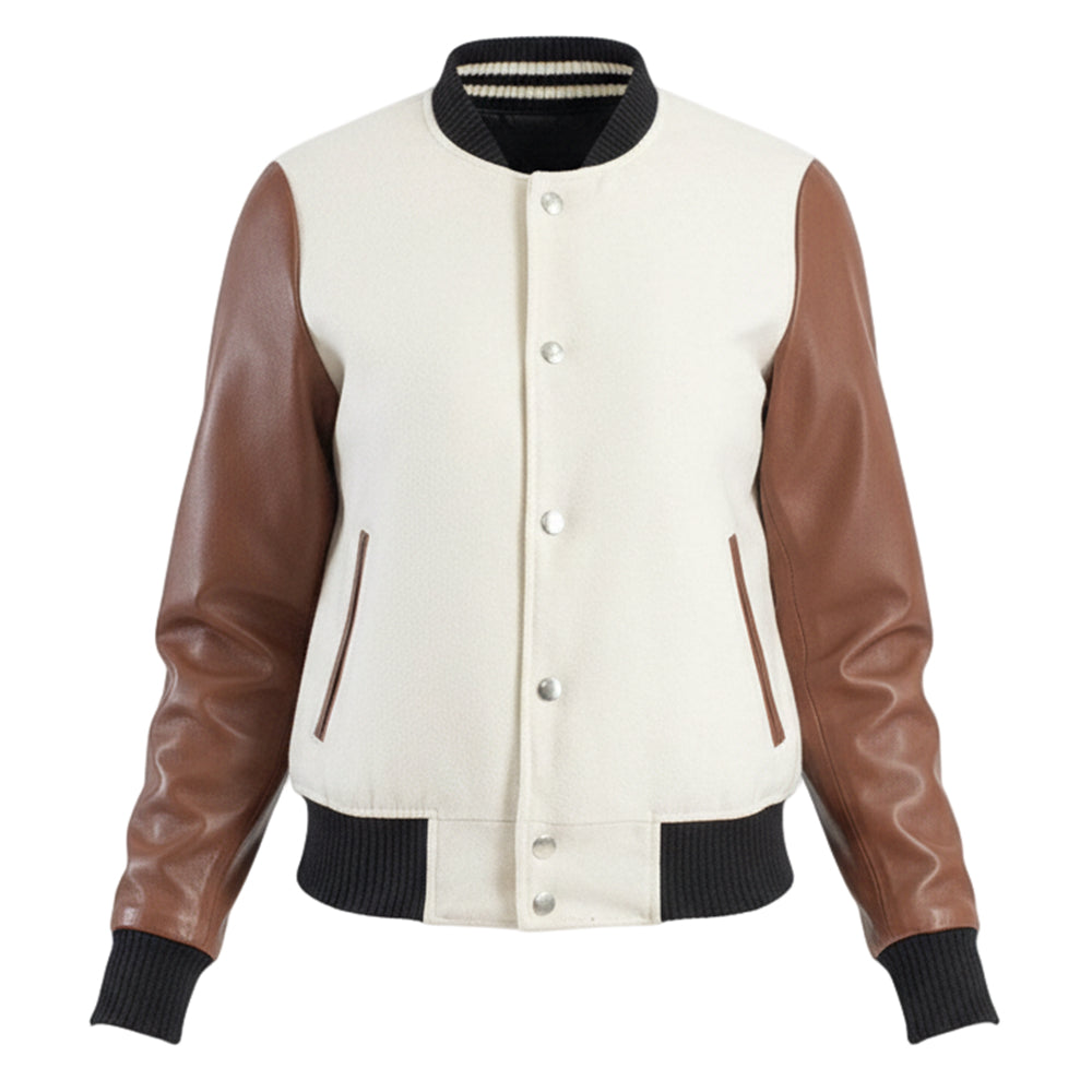 사반트 화이트 & 브라운 하이브리드 바시티 재킷