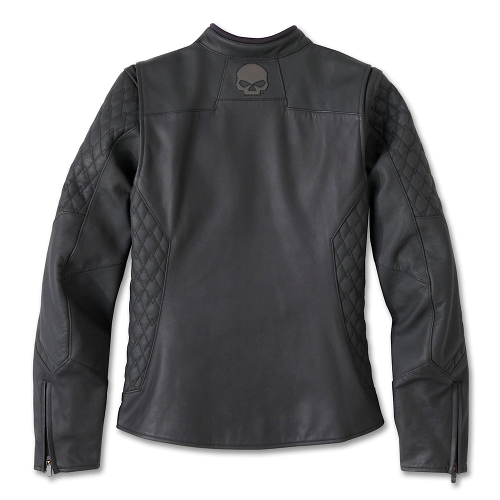 Detailer vun der Willie G Skull Graphic Lieder Reidjacke fir Dammen.