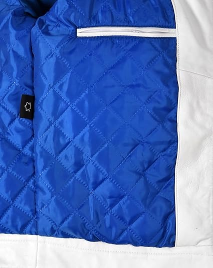 Individualaus kirpimo sportinio svorio karvės odos striukė su viskozės pamušalu. Užsegimas užtrauktuku, dvigubos kišenės su apvadais priekyje apačioje ir vidinė kišenė ant krūtinės. Užtrauktukai ties rankogaliais ir spaudė ties apykakle. Siuvinėtos dėmės ant krūtinės ir nugaros su spausdintais paveikslėliais ant rankovių.