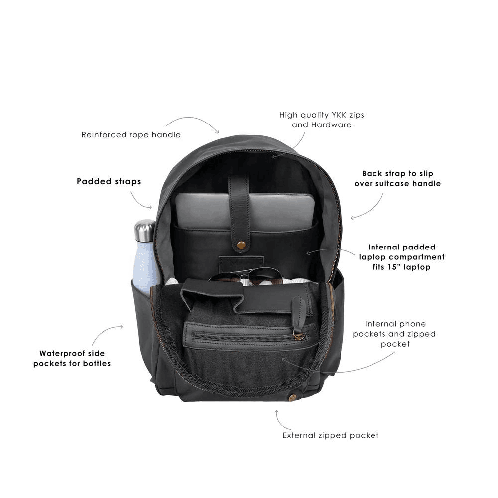 De verstelbare bandjes op de rug (L37cm en L70cm) een op maat gemaakte pasvorm en zorgen voor gebruiksgemak voor elk lichaamstype . De horizontale band staat u toe om plaats de rugzak op een handvat voor een koffer met wieltjes waardoor het ideaal is voor zakenreizigers en mensen die veel vliegen.