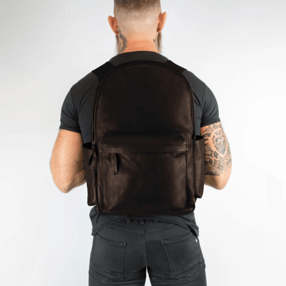 Donkerbruine leren rugzak