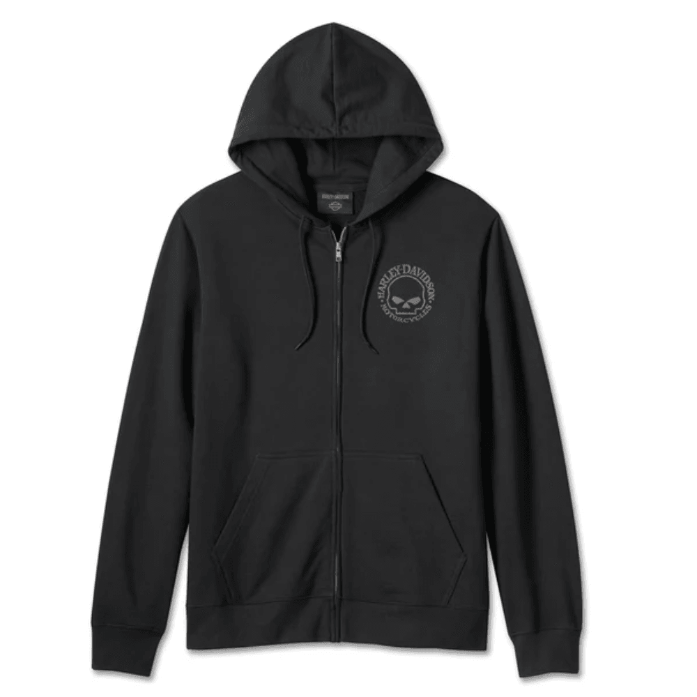 Combineer een klassieke look met casual comfort en onze Daytona Bike Week-graphic uit 2000 in deze hoodie met rits. Gemaakt om de kou buiten te houden met een warme mix van katoen en polyester sweatshirtfleece, met favoriete eigenschappen zoals ruime kangoeroezakken, een gevoerde capuchon met trekkoord en ribgebreide manchetten en tailleband die hun vorm behouden. Ons iconische Willie G ™ Skull-logo prijkt op de voorkant en prijkt op de achterkant.
