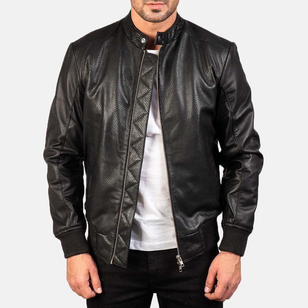 Details of the Avan Black Leather Bomber Jacket are Given Below.