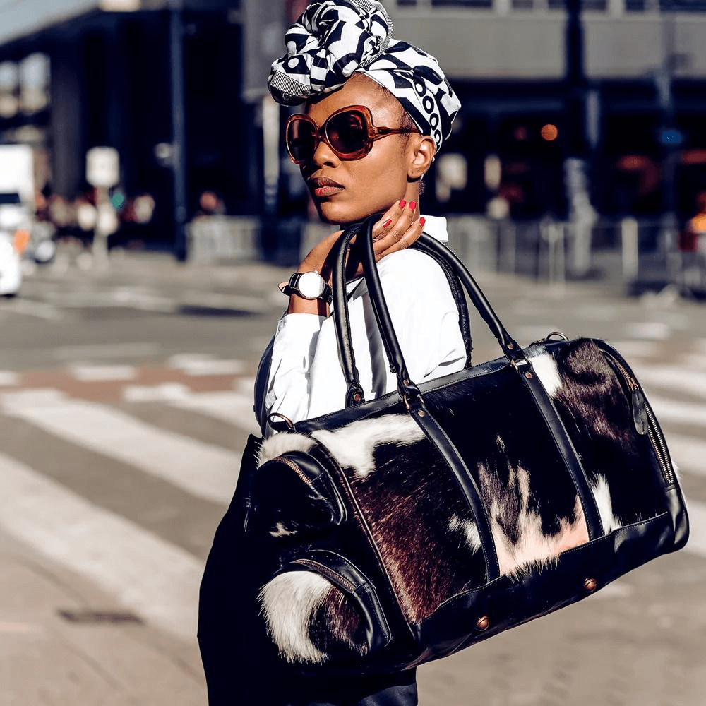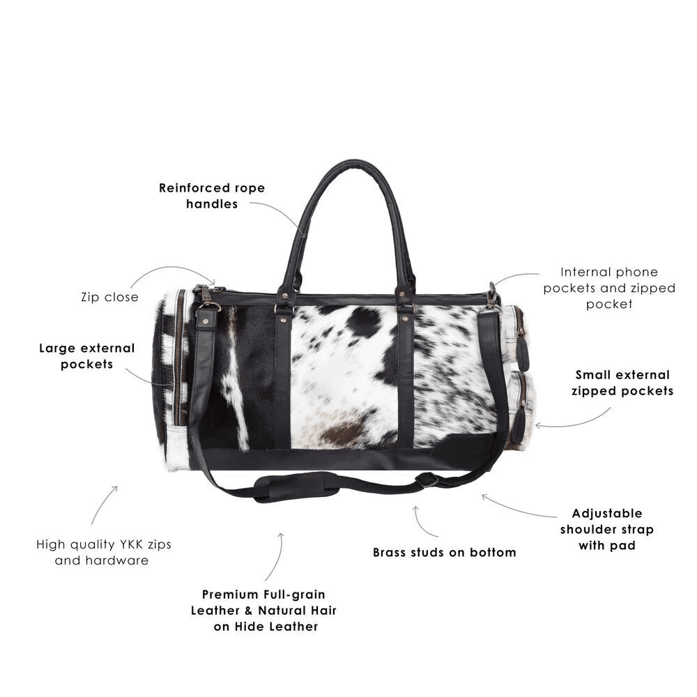 - Materials: 100% pony hair leather exterior. 100% cotton lining interior.