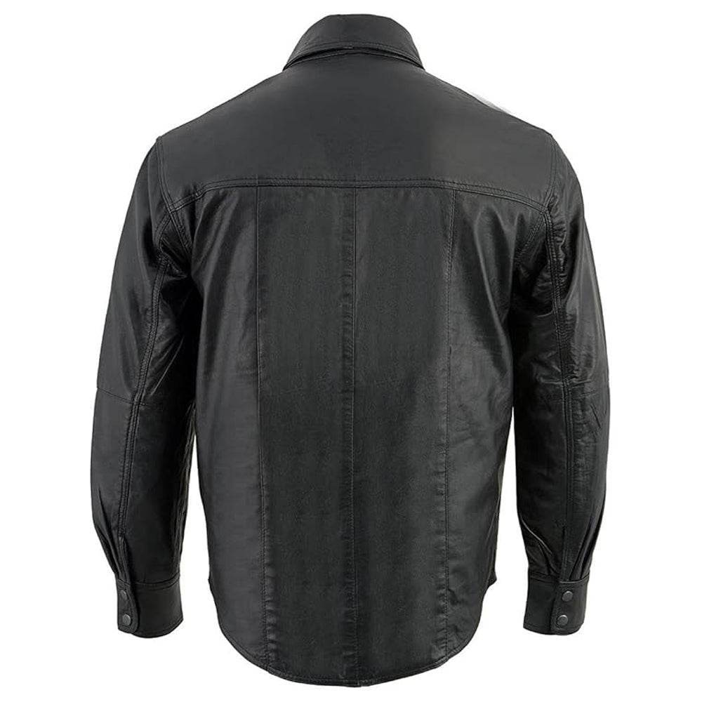 Contrasting with more formal leather jackets, leather shirts feature an elongated, soft style. Wear this black shirt as both outerwear and layering-up. Great to style over t-shirts for added charm or wear under an overcoat for extra elegance!