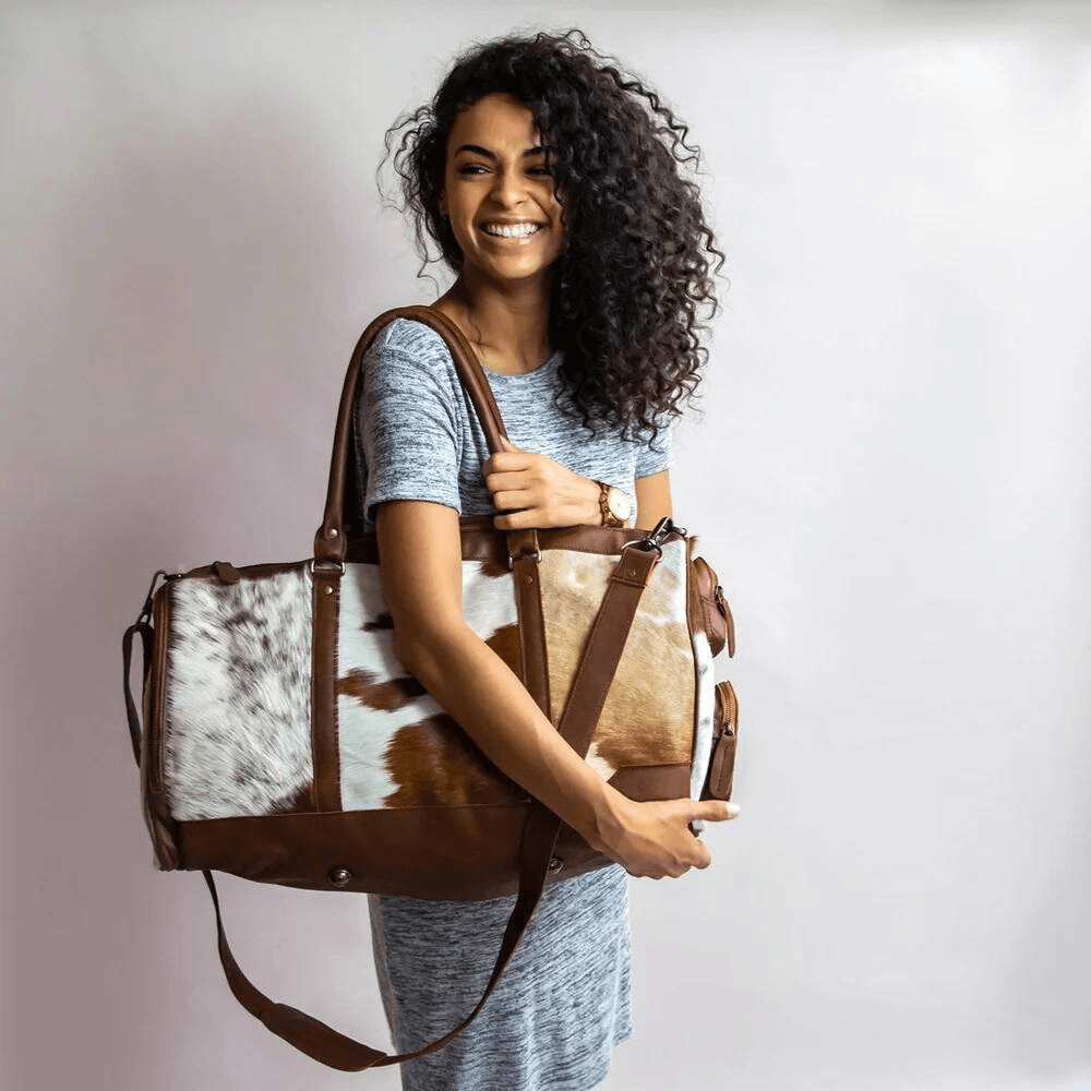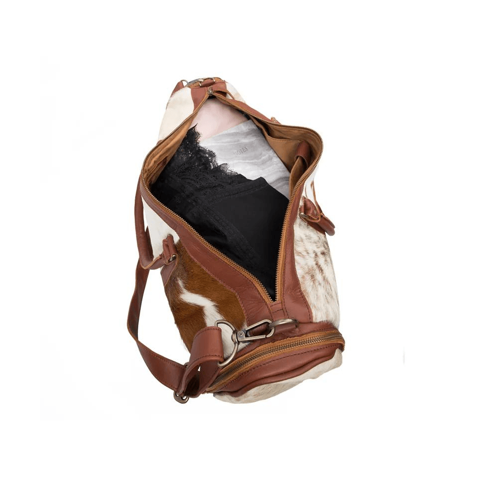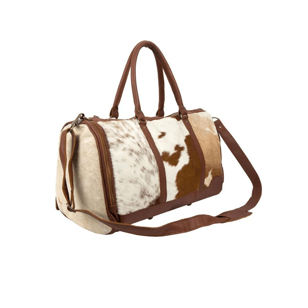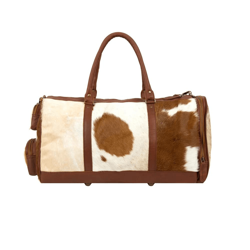 Brown and White Natural Cowhide Leather Columbus Weekender