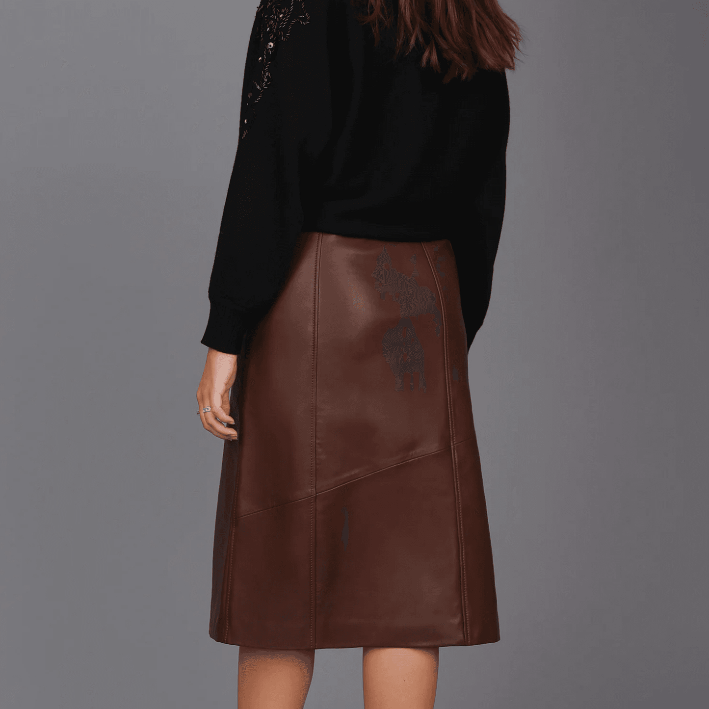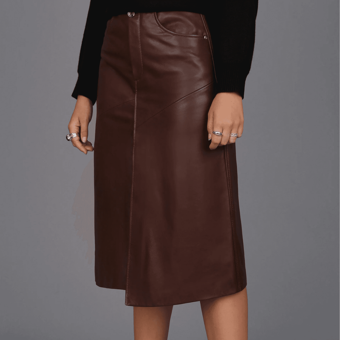 Brown leather, and leather in general, must be taken care of properly so that it can last. Its cleanliness should also be maintained, wipe it with a damp cloth regularly. Treat with a leather conditioner to keep it soft and plush and help prevent cracking in time. Moreover, it should be kept in a cool dry place and never folded to preserve the shape of your leather skirt.