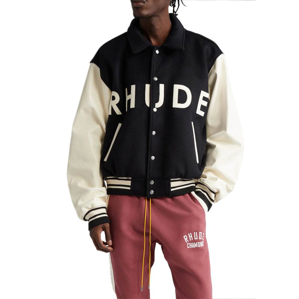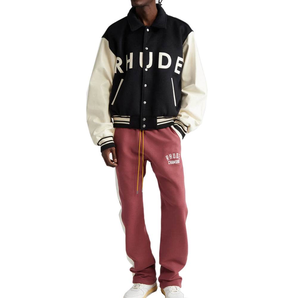 Show off sporty style with this slightly oversized varsity jacket, featuring an embroidered mascot galloping across the back. Striped ribbed trim and a quilted lining add classic varsity vibes and extra warmth.