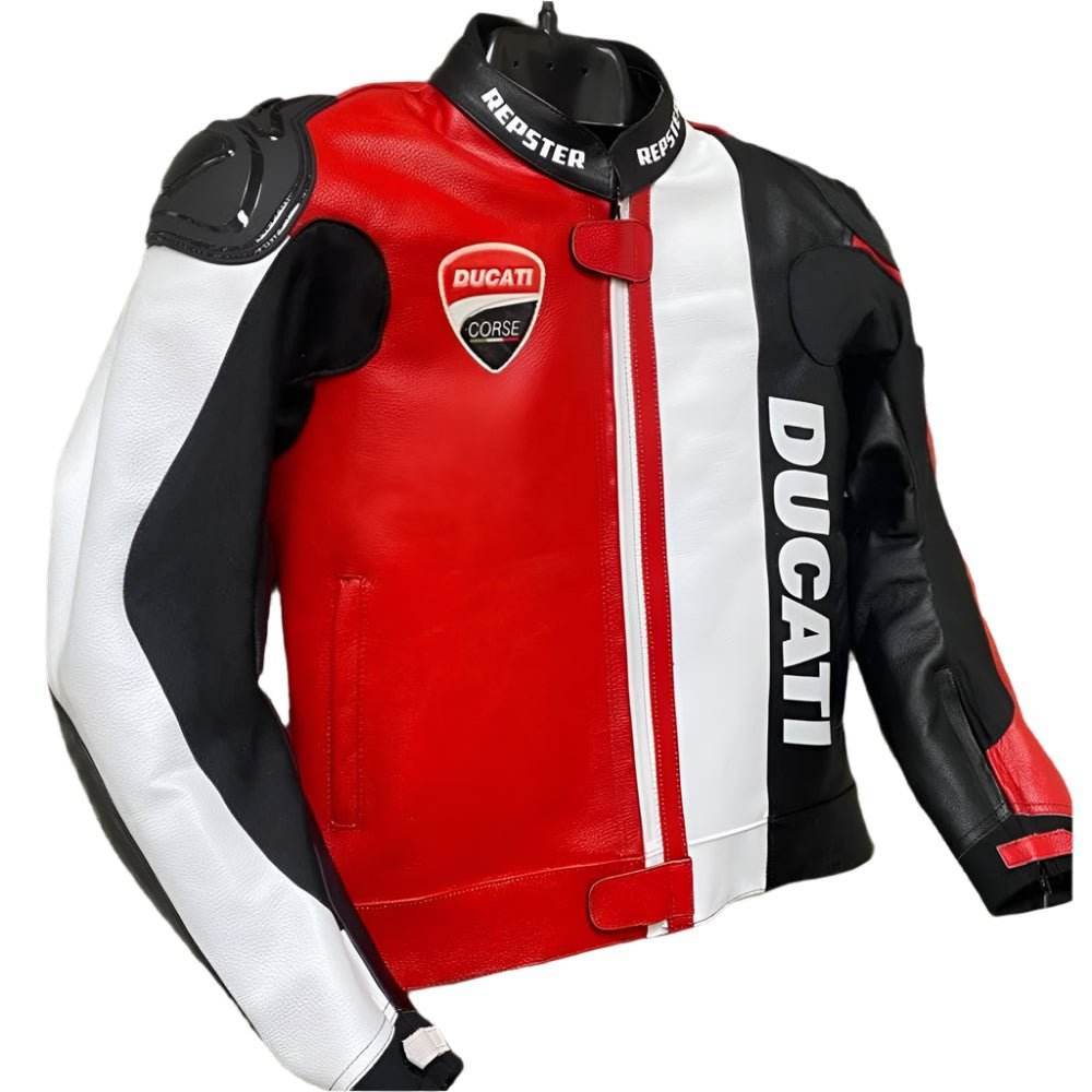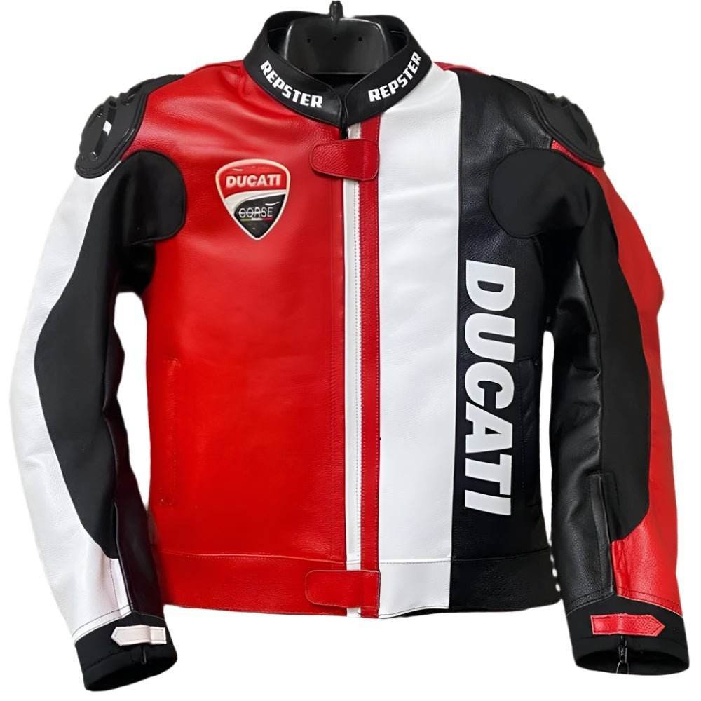 Ducati Corse Motorbike Racing Leather Jacket-Cowhide Leather And Certified Protectors