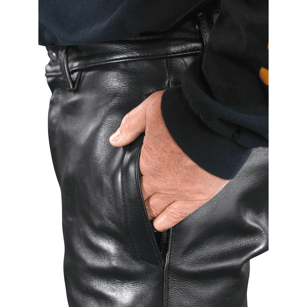 Leather chaps provide enhanced safety in an accident. Constructed of durable material resistant to road rash and skin injuries caused by sliding on the pavement, these durable garments offer extra protection - especially important for riders traveling long distances or frequenting highways.