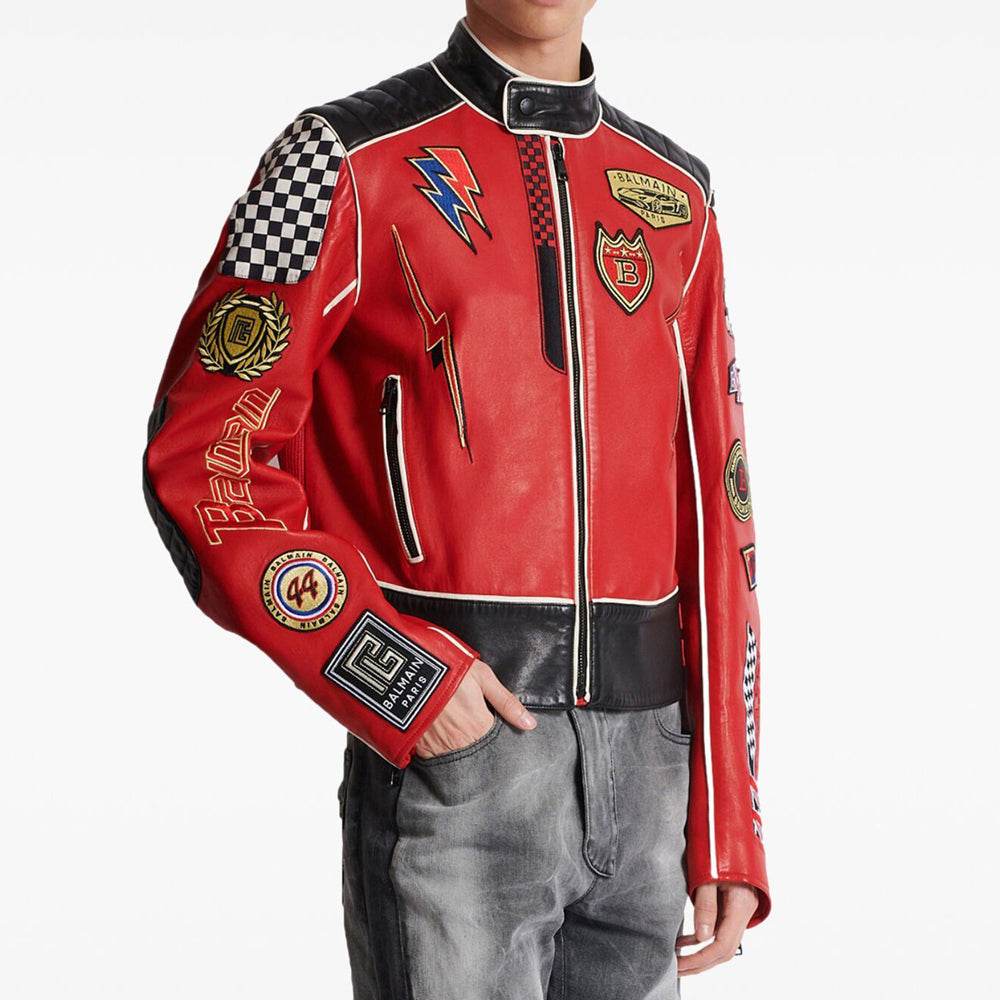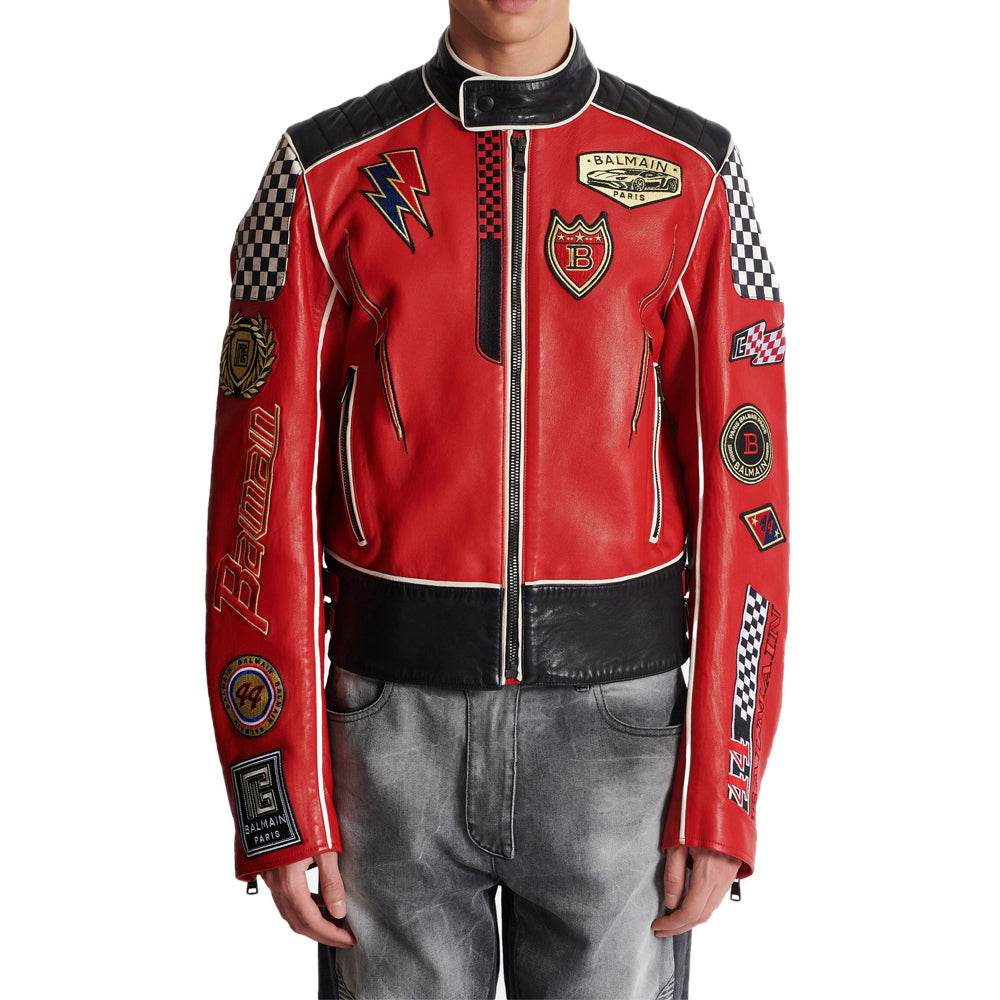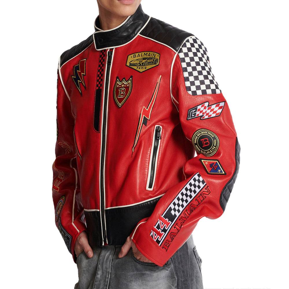 Lambskin Jacket Bal-Men Racing Patches