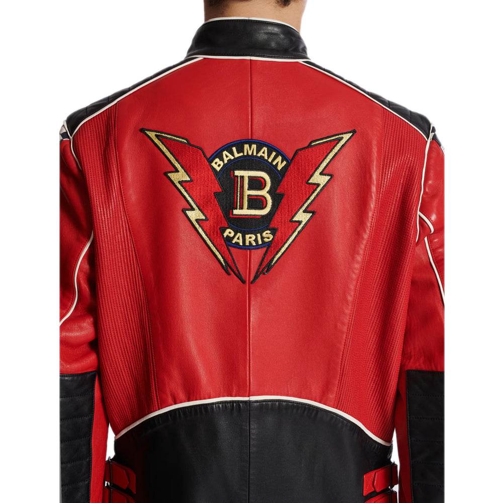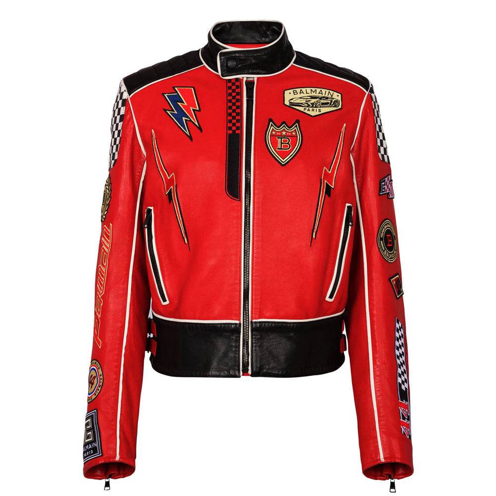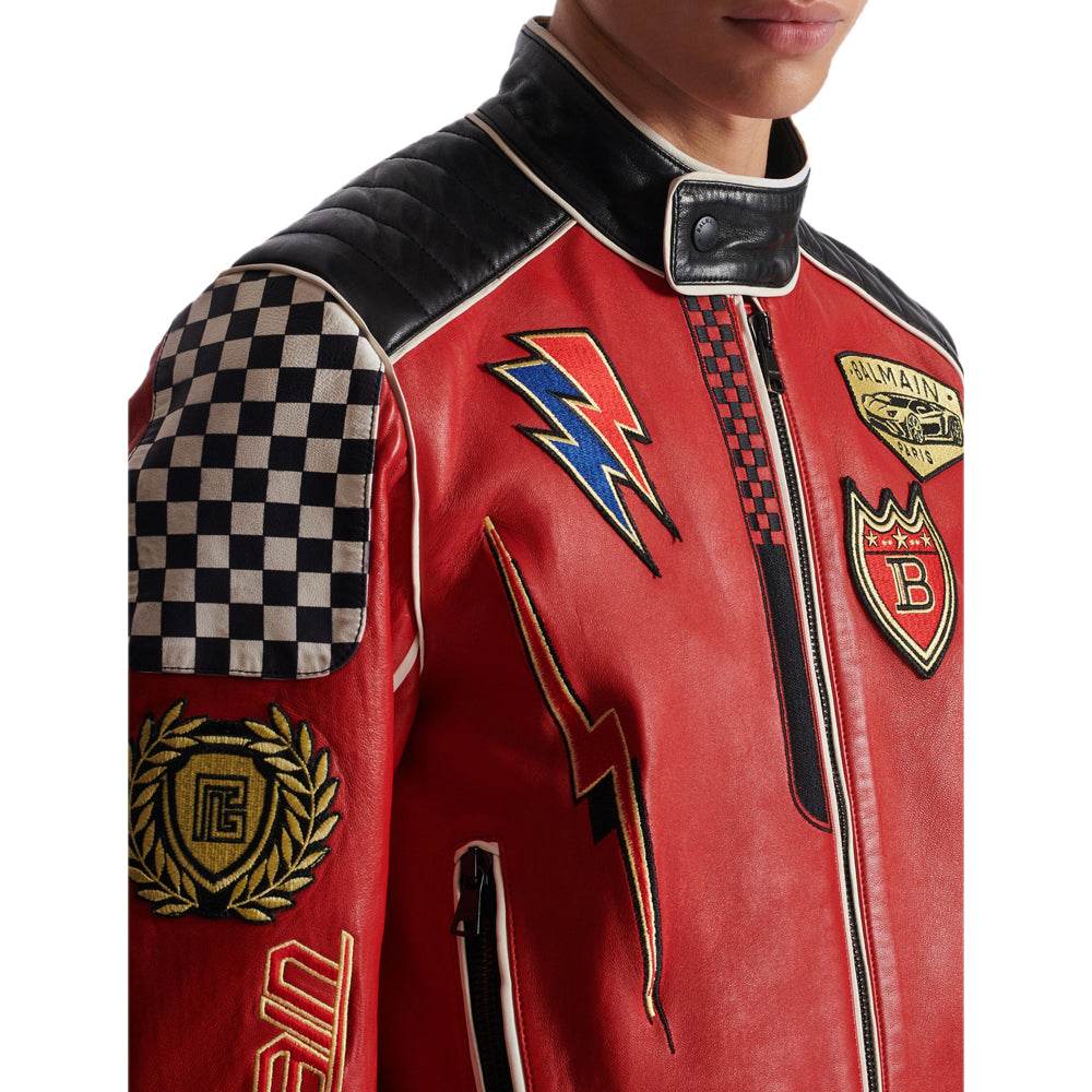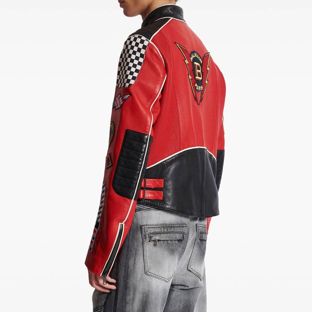 Lambskin Jacket Bal-Men Racing Patches
