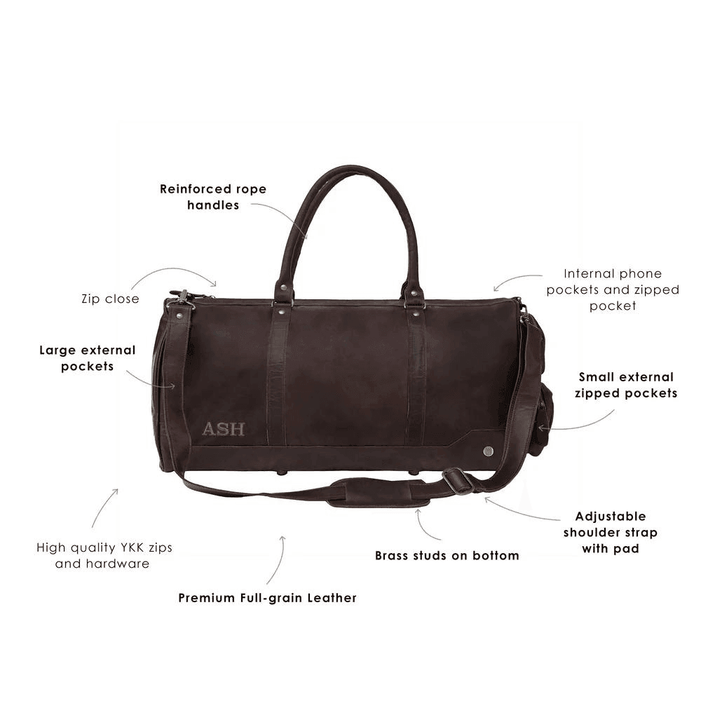 This Big Leather Duffle Bag is the ultimate blend of design as well as durability and utility.Its premium materials, spacious design and thoughtful features make the Big Leather Duffle Bag an excellent option for travelers, athletes and anyone in search of an aesthetically pleasing bag - be it for weekend travel, fitness or everyday use. From suitcase travel to multipurpose daily use - its timeless quality means this addition to your personal collection will remain relevant year after year!