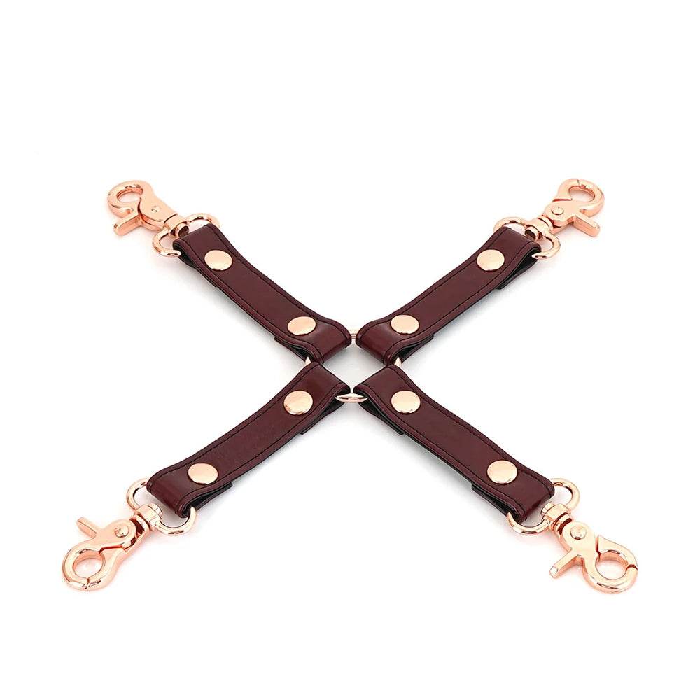 The first thing that you'll be able to notice with the leather hogtie is the amazing aesthetic appeal. It's part of the Wine Red bondage kit collection, and it comes with a vibrant scarlet hue that exudes elegance and sensuality. The vibrant colour, when combined with the sophisticated clip in rose gold, creates a striking contrast that's visually stunning and powerful in symbolism, a mix of passion and control.