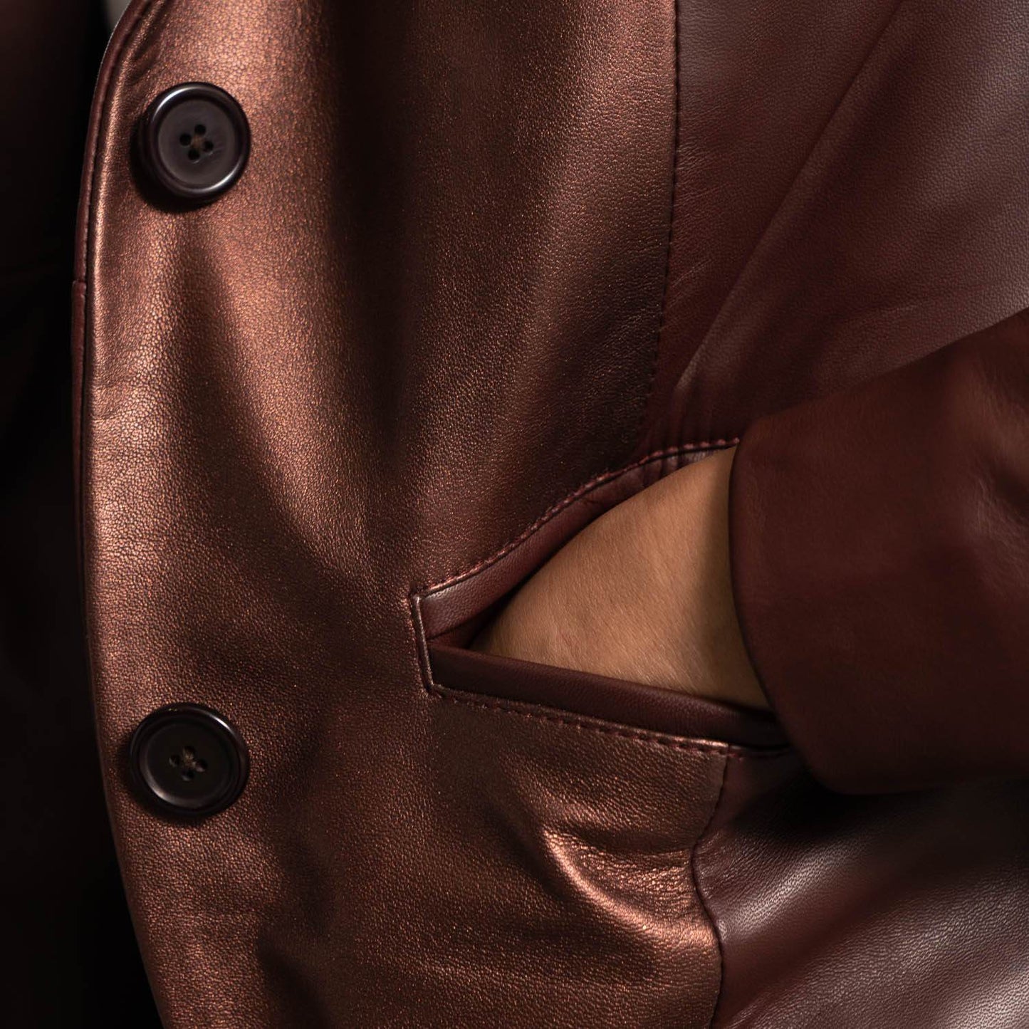 Elegant yet edgy: Combining traditional blazer styles with the polished leather finish creates an elegant look that is appropriate for many different styles and occasions.