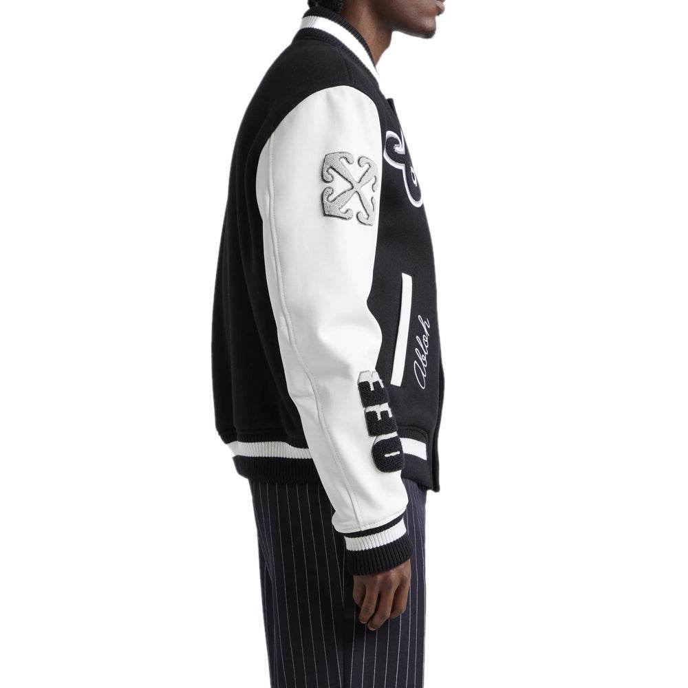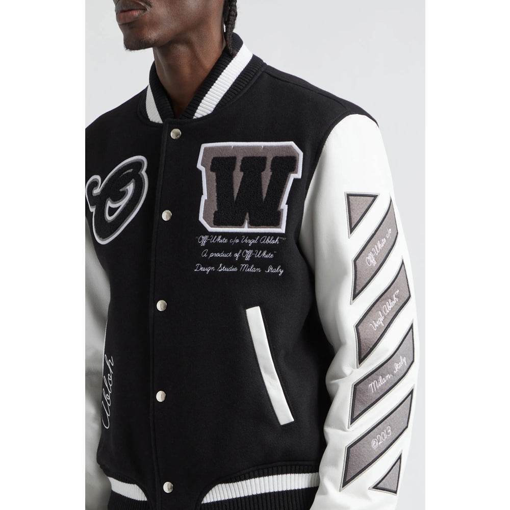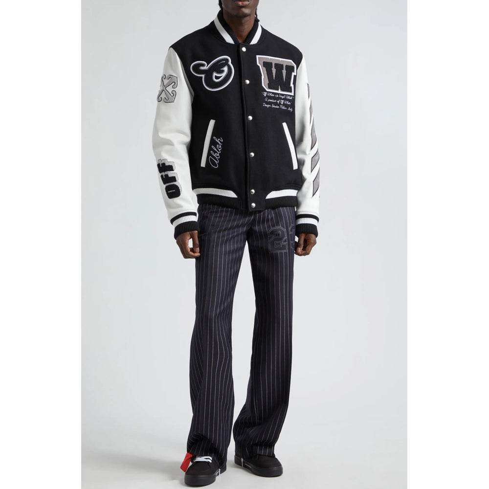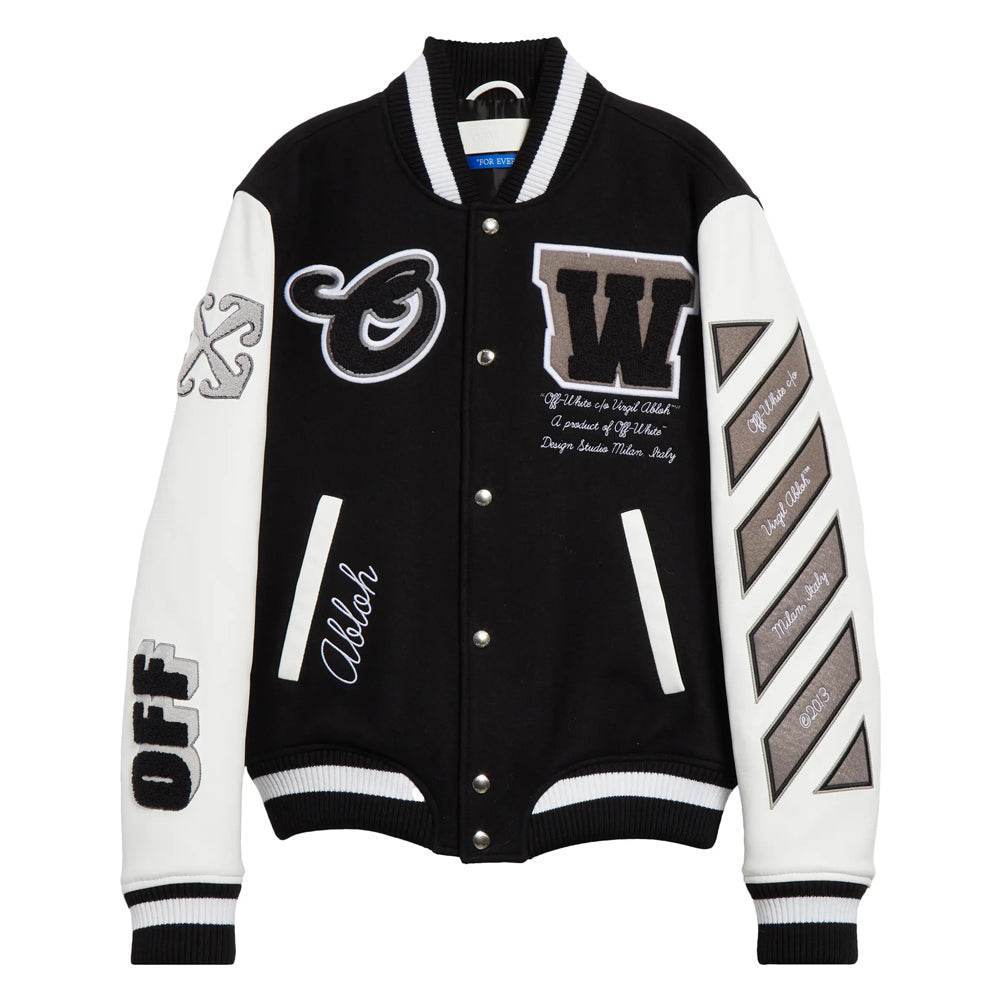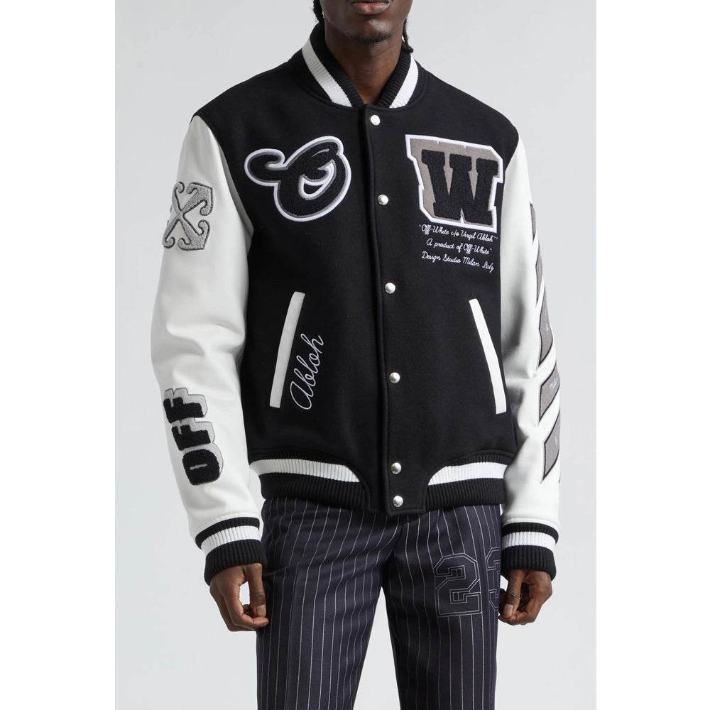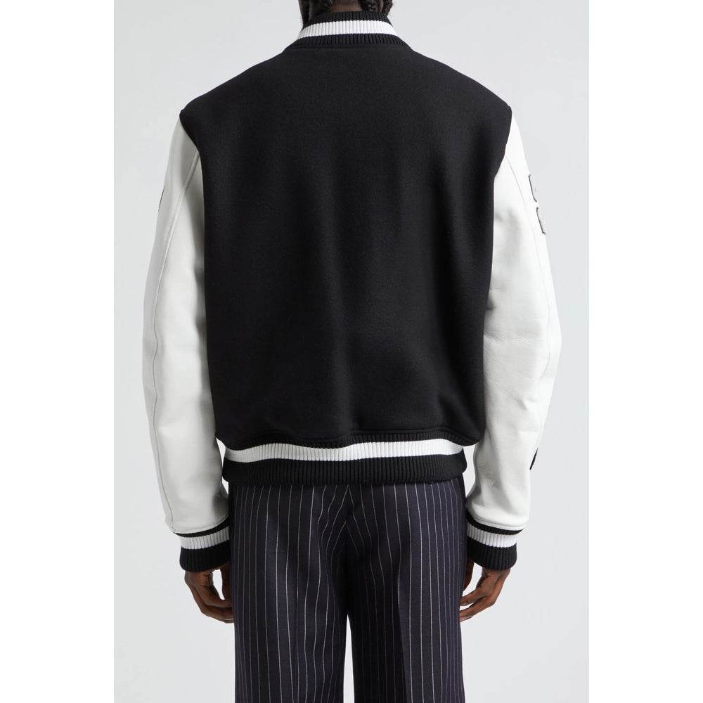 Elevate your wardrobe with this varsity jacket, crafted from a woolly blend and adorned with high-contrast logo patches on the front and leather sleeves. It’s the perfect combination of classic design and modern style.