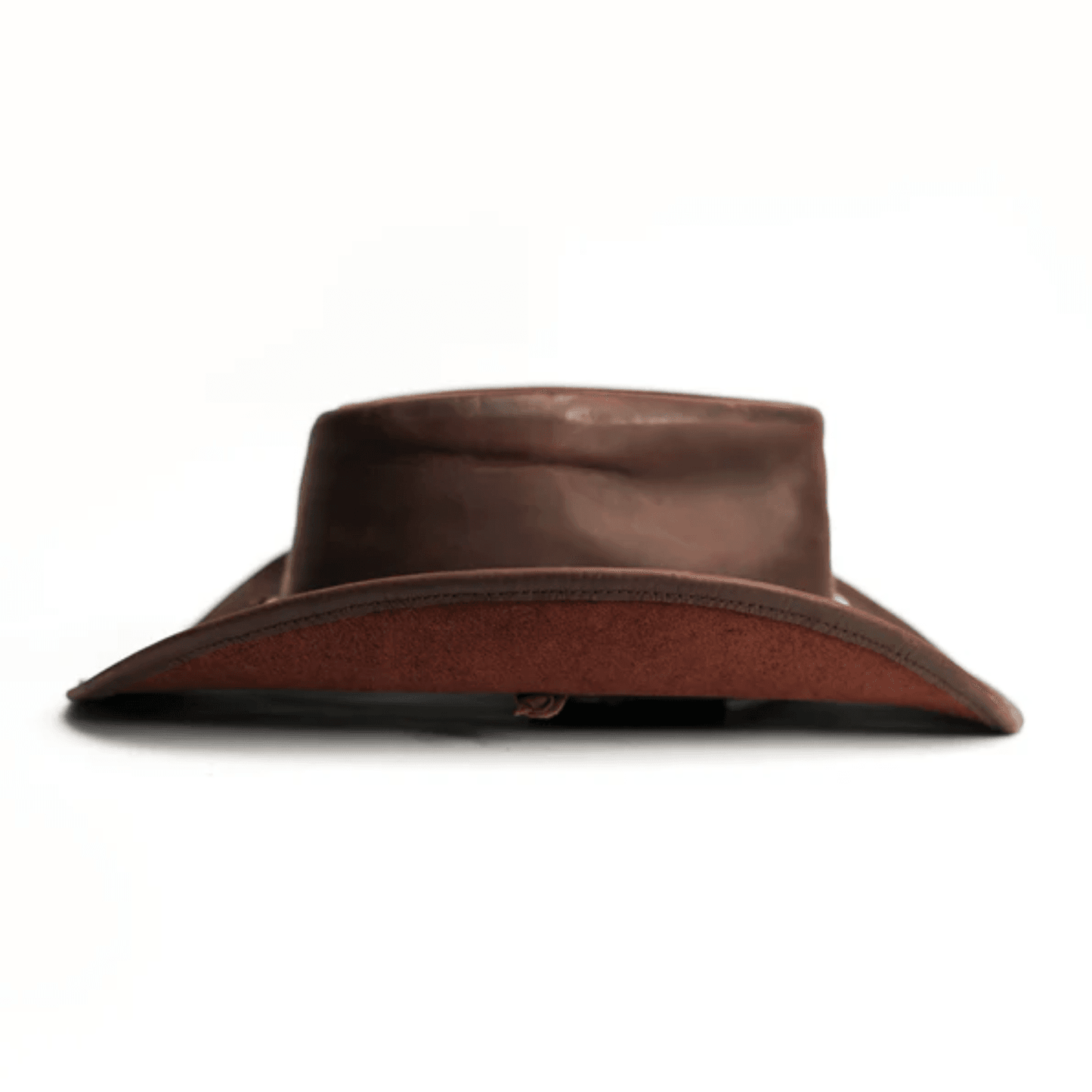 Outback: This lower-crowned, wide-brimmed leather cowboy hat is great for the outdoorsman at heart because it shelters your face from the sun. It is an excellent fit for the hiking, camping, or outdoorsy type.