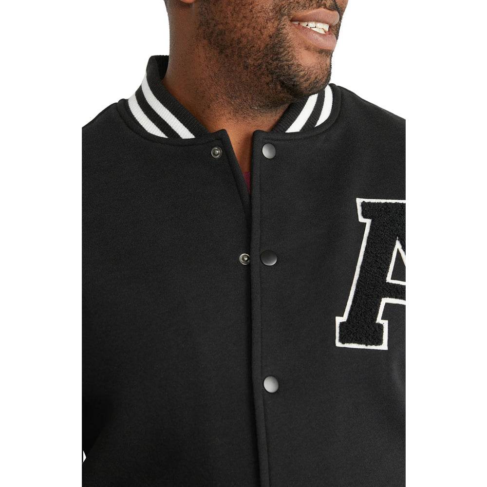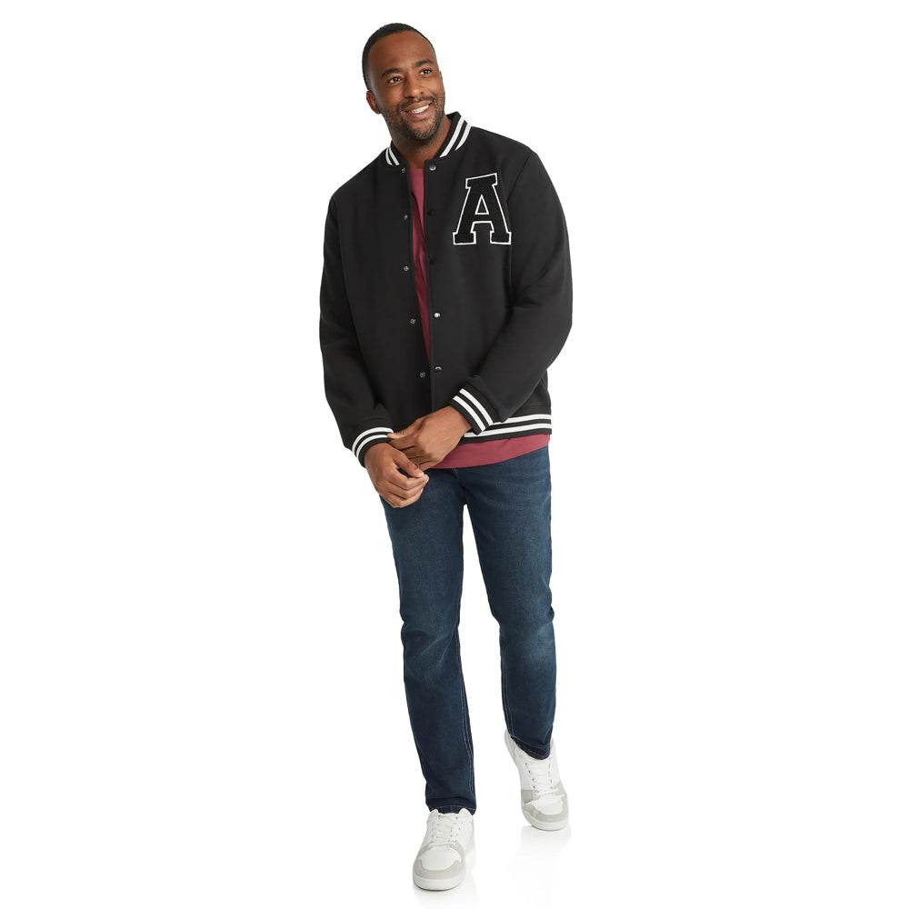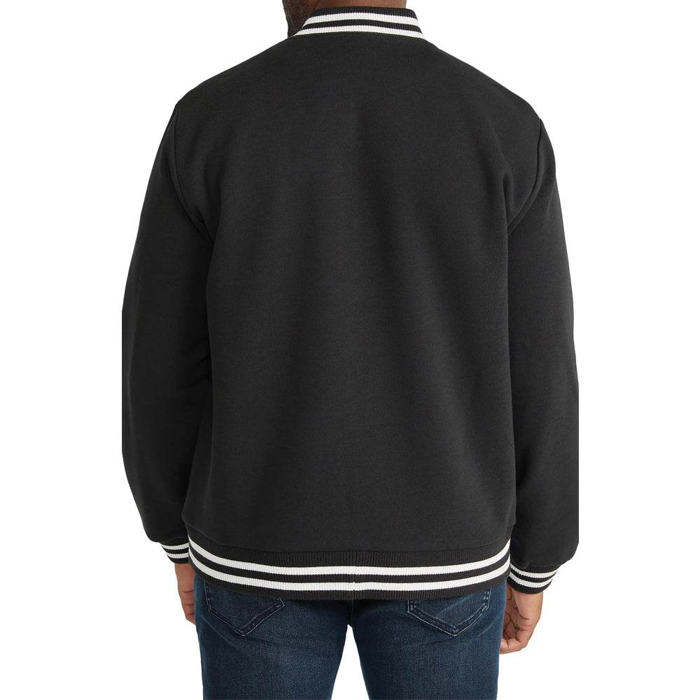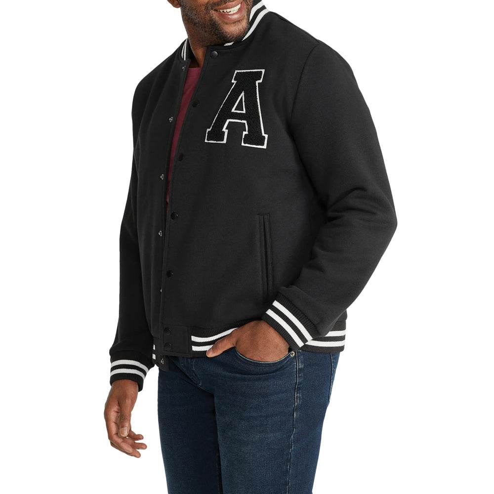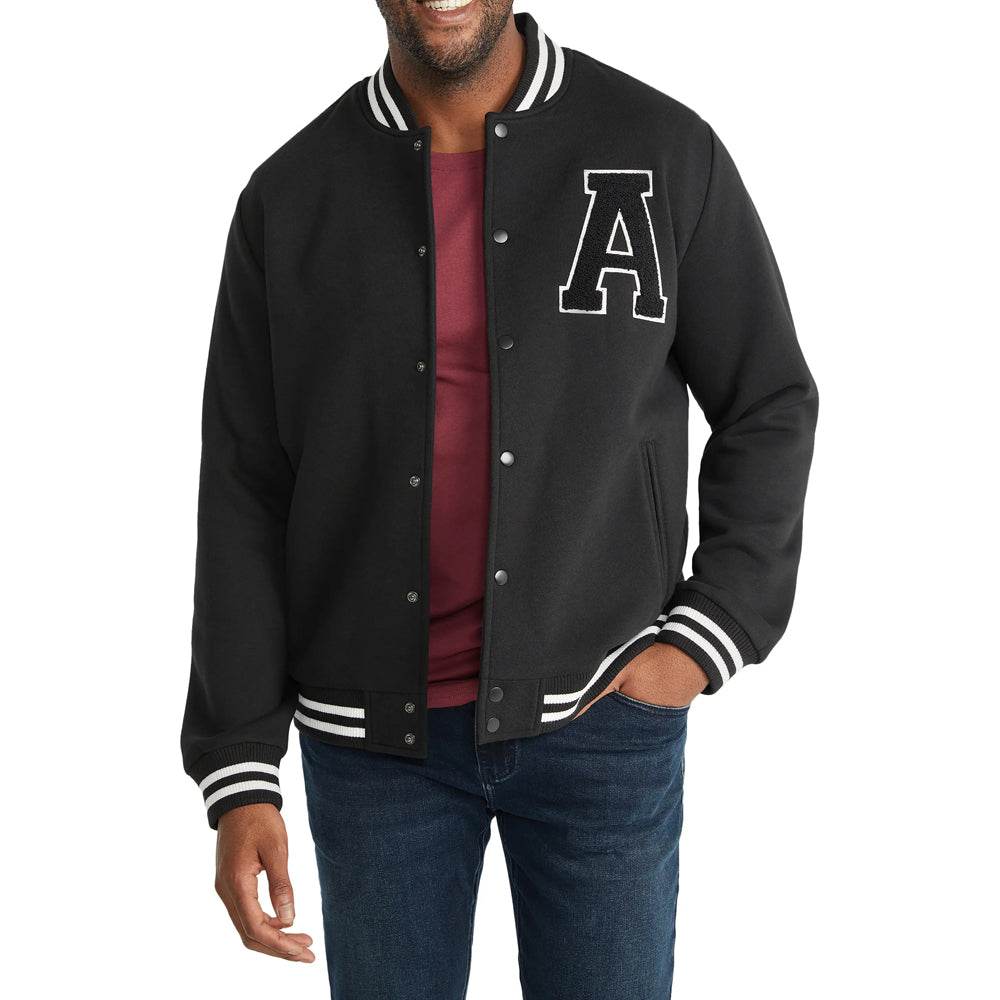 Upgrade your wardrobe with this classic varsity-style bomber jacket featuring striped trims and a timeless blade collar. A letterman patch completes the look for effortless cool.