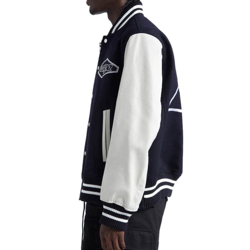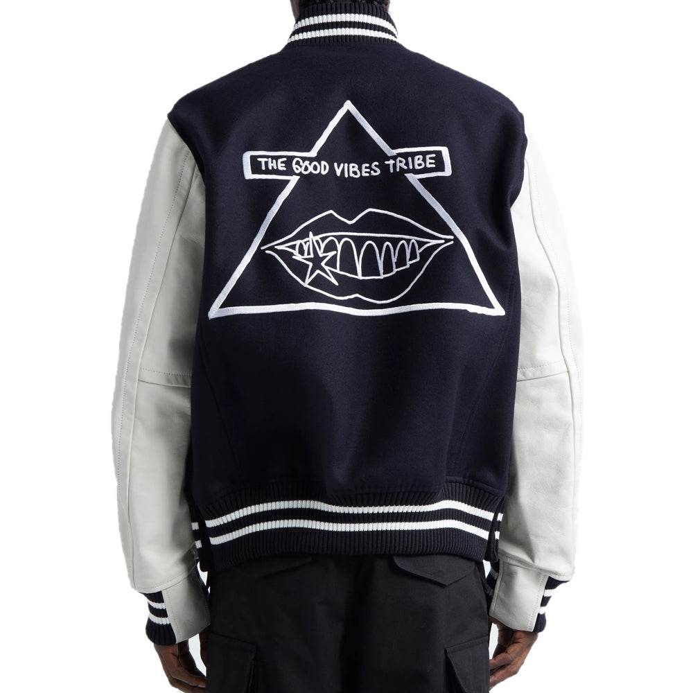 This varsity-inspired bomber jacket is a creative collaboration between the Japanese label and professional skateboarder and artist 'The Gonz.' Supple leather sleeves provide a luxurious contrast, while decorative zippered trim adds a sleek, metallic edge.