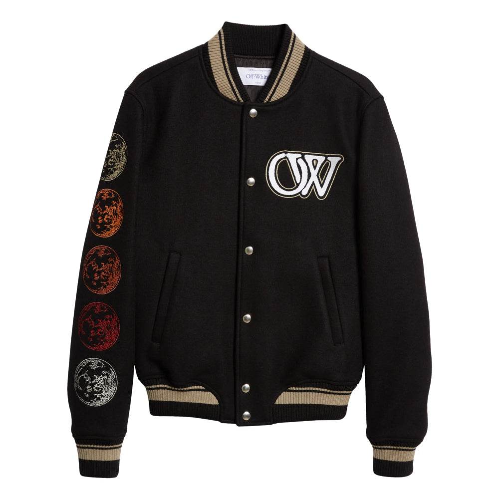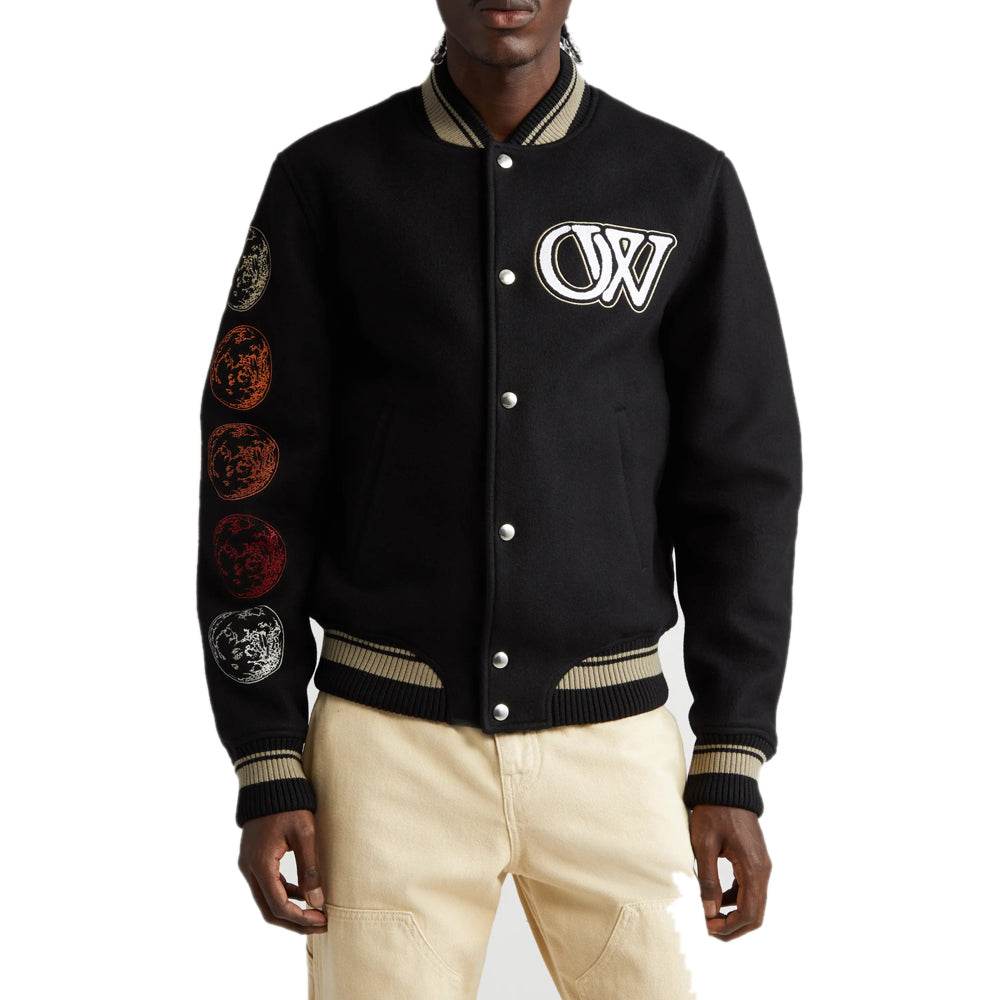 Moon Phase Virgin Wool Blend Varsity Bomber Jacket