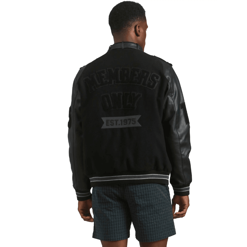 A fresh take on an enduring classic, this Members Only varsity jacket combines timeless design with modern details. Crafted for loyal Members Only fans, it features iconic elements and bold chenille embroidery for a standout look.