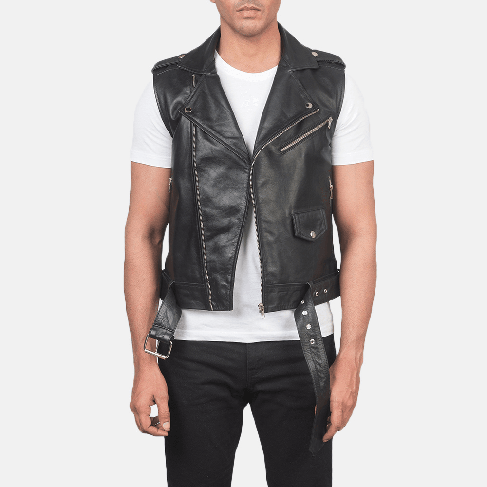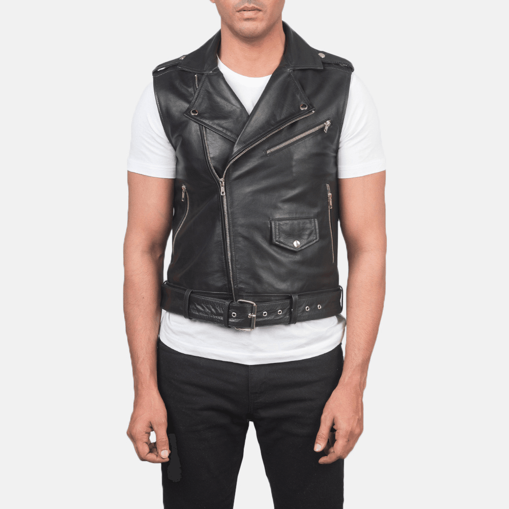 The Sullivan Black Leather Biker Vest will elevate your style and provide the durability and functionality that you need. This biker vest is made of real cowhide leather quilted polyester lining zippered closure adjustable waist belt and multifunction pockets.