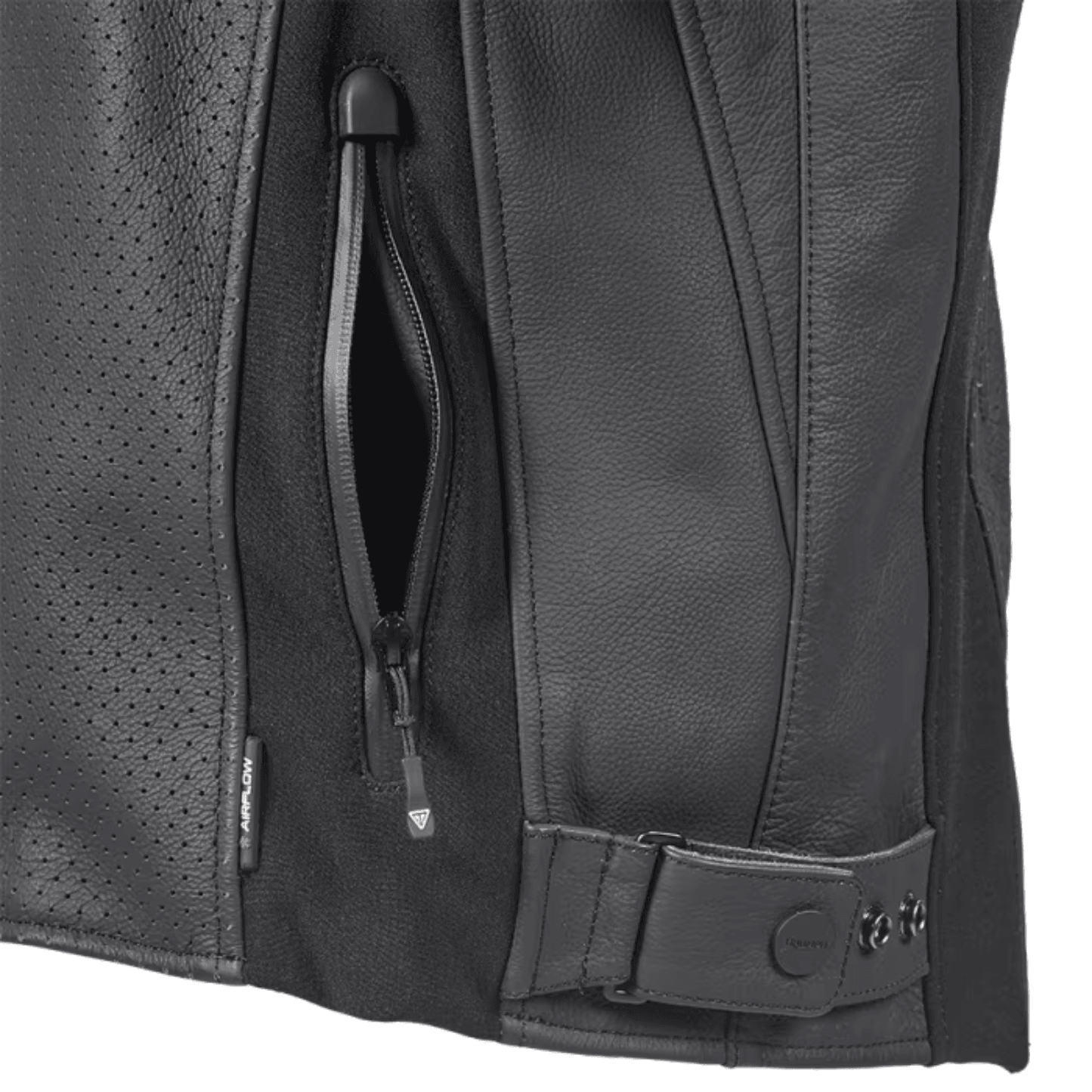 Ideal for riding in warm weather - Perforated leather improves the flow of air and helps to reduce heat build-up. Superior protection - Includes adjustable D3O(r) armour for elbows, shoulders, and the back. Flexible fit The adjustable hem and stretch cuffs for the best comfort. Modern design with a sports-inspired appearance with black reflective inserts that provide visibility.