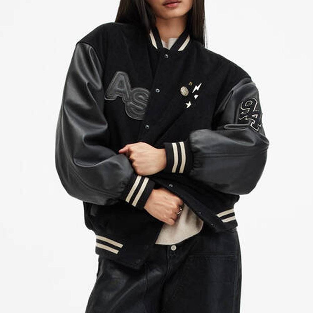Valeria Varsity Leather Bomber Jacket