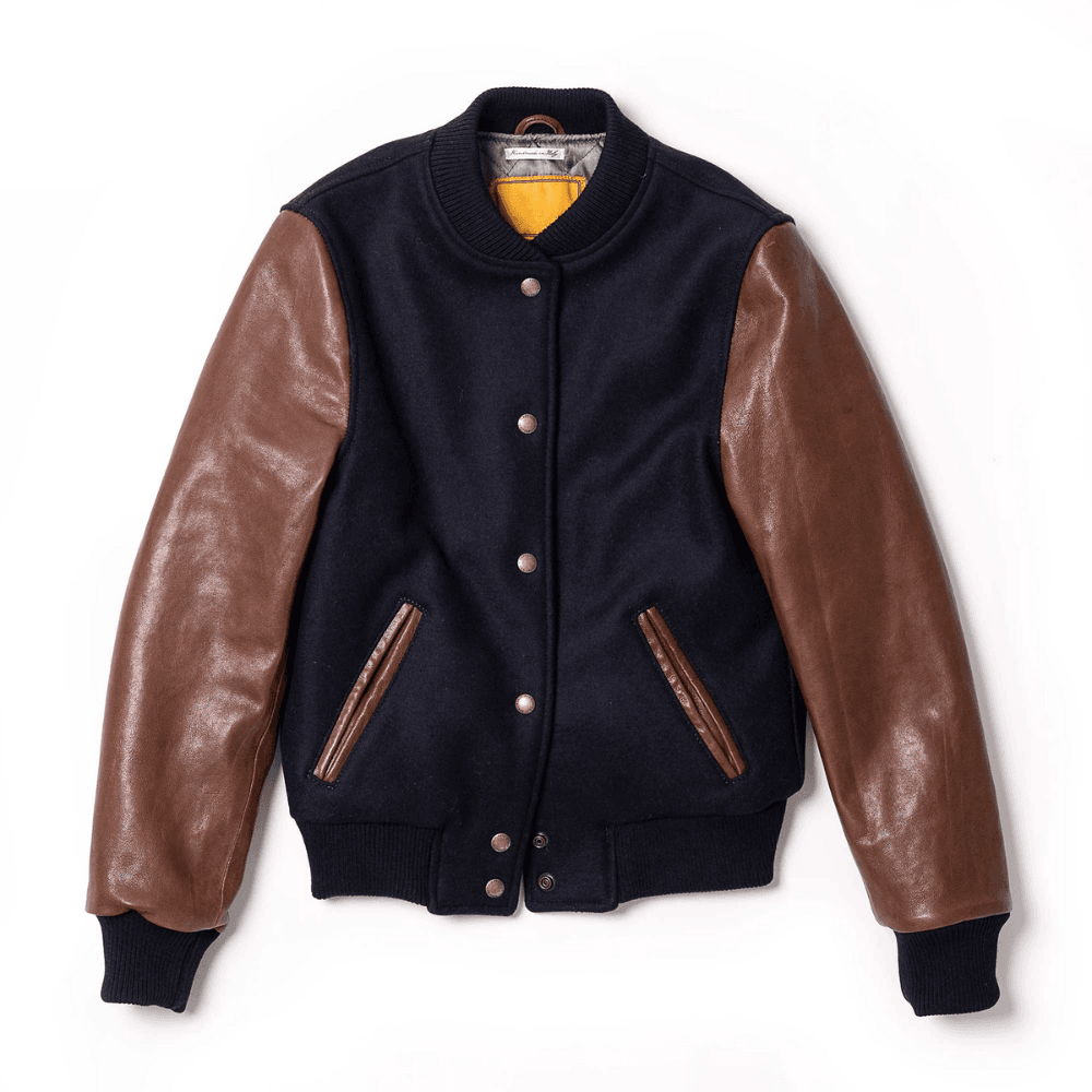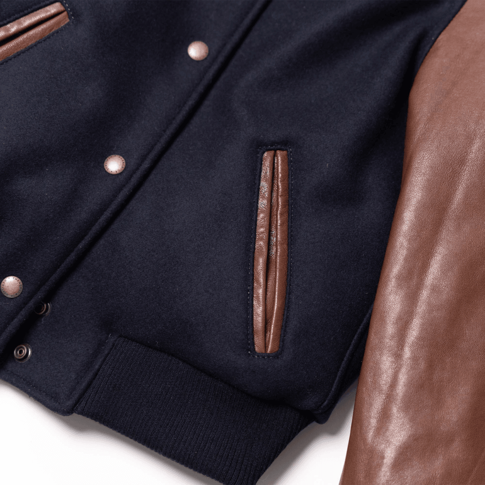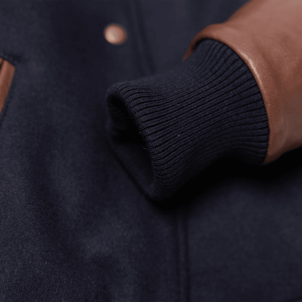 „Varsity“ Damen-Wolljacke in Marineblau | Chaqueta de lana azul marino para mujer estilo universitario | Giacca in lana blu navy da donna "Varsity" | Veste en laine bleu marine pour femme « Varsity » | "Varsity" marineblauwe wollen jas voor dames.