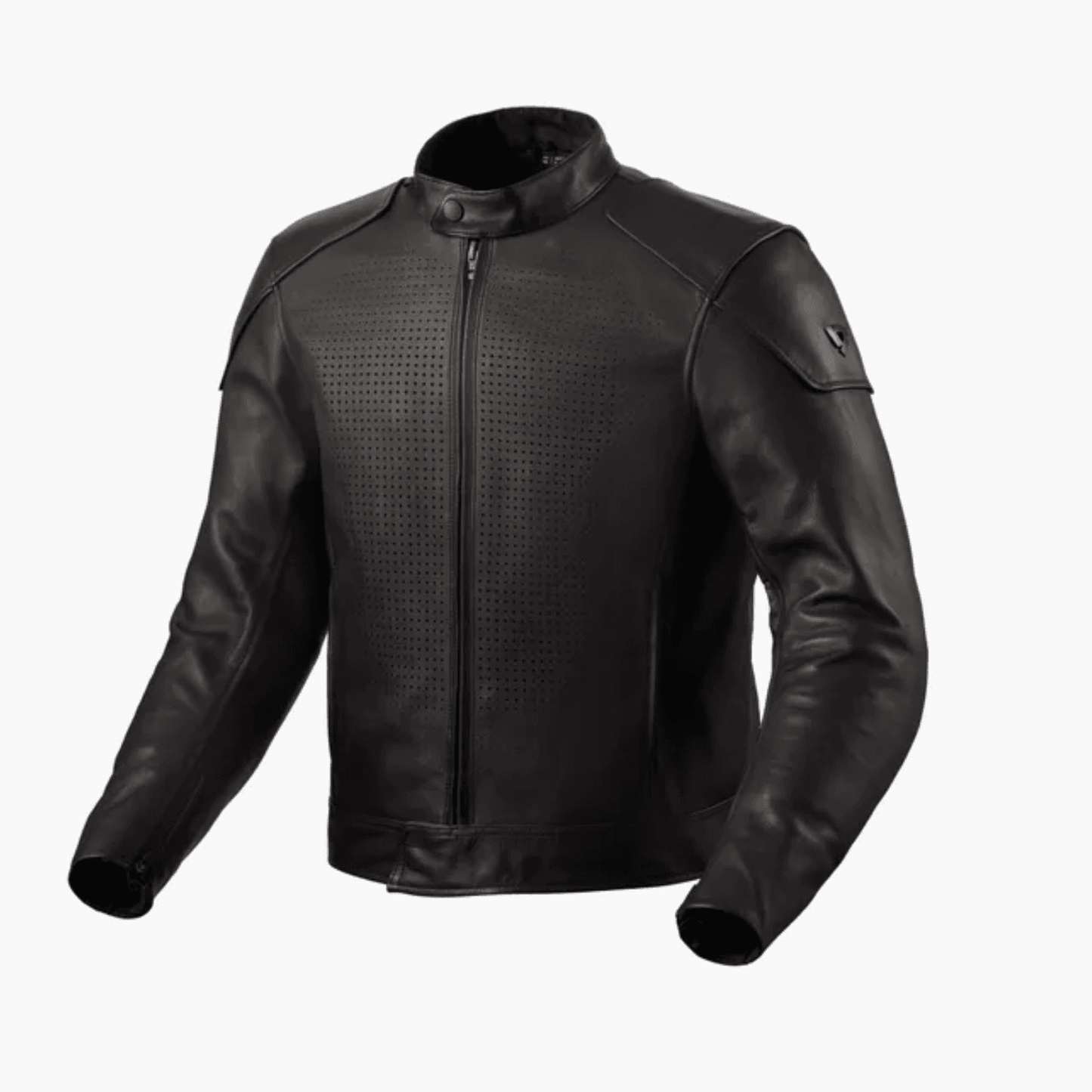 Ventilated, high-collar, Heritage-inspired leather jacket