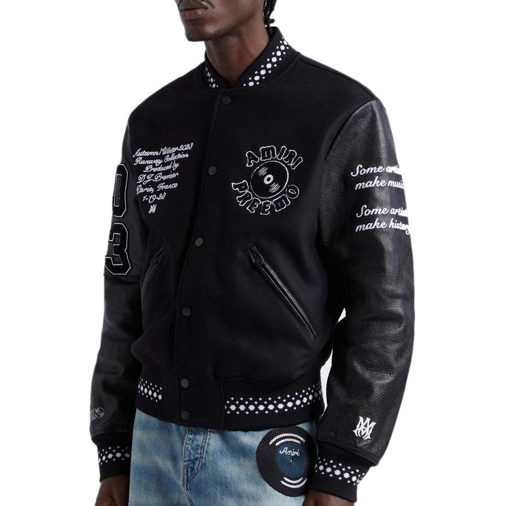 Celebrate music and style with this varsity jacket created in collaboration with iconic producer DJ Premier. Featuring gothic lettering and chenille record patches, it’s a tribute to timeless beats and bold design.
